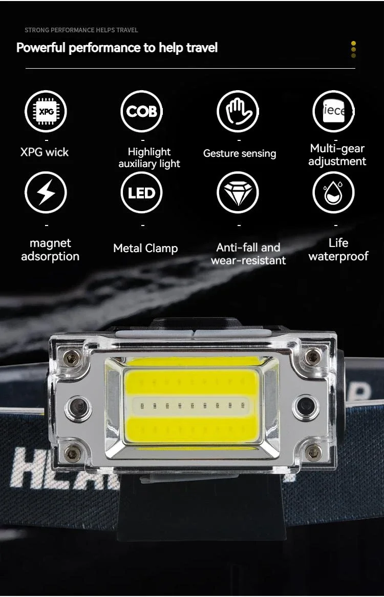 T133 COB датчик фара 5 режимов мини портативный сильный яркий светодиодный шляпа клип фара открытый велосипед рыбалка кемпинг охота фонарик